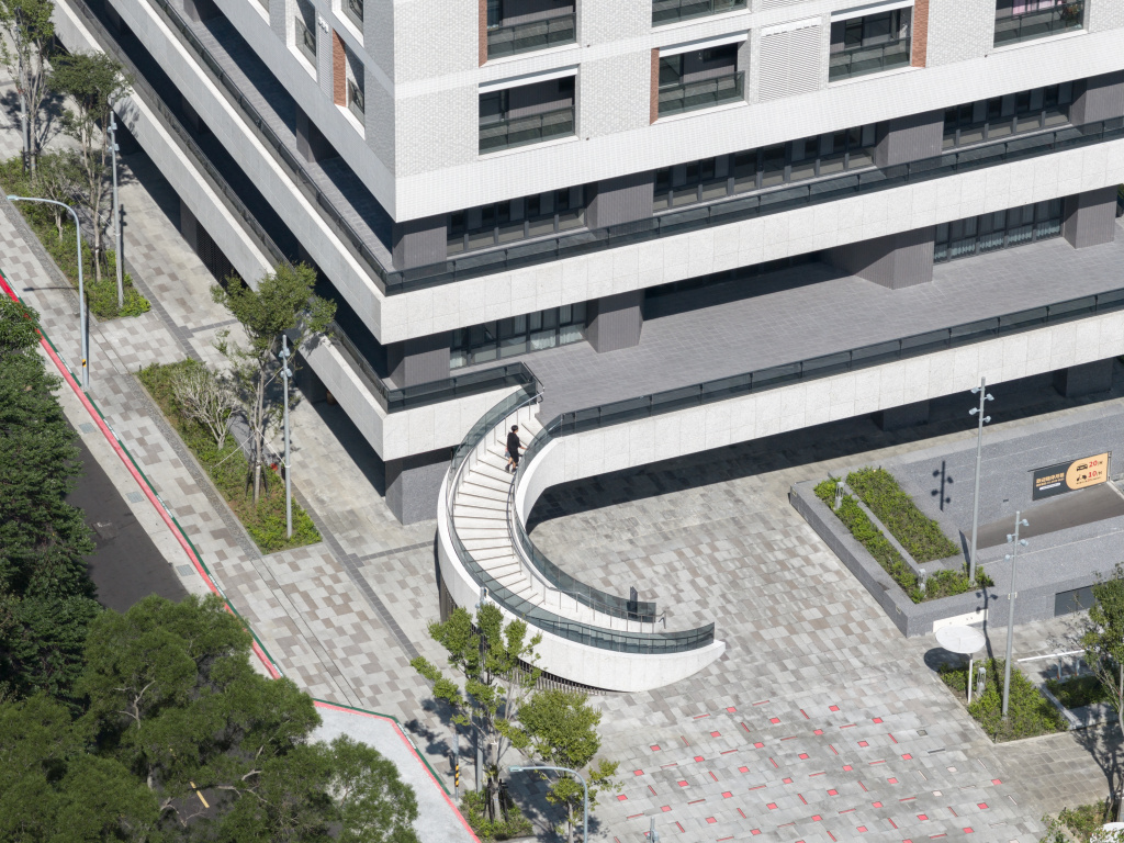空間配置上全案分別藉由社區活動設施樓層及大面積圍繞居住空間的陽台作為與外在都市環境之緩衝;外觀造型除前述內容之外,尺寸為統一模矩,提高施工效率並降低成本;地面層讓社區與參建單位皆有獨立出入口並於東西兩側街角設計特色廣場搭配商業出租單元,創造理想的都市空間。