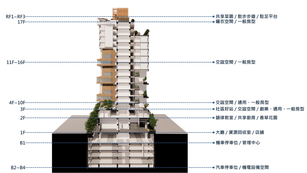 To preserve the site’s inherent “presence,” maintain continuity across time and space, and integrate social housing to achieve the goal of a “sustainable community”—creating a living community that supports itself environmentally, economically, and socially— In light of this, we propose the following five design strategies, aiming to design the Taichung Central Market Good Homes as a “Sustainable Community in situ”: